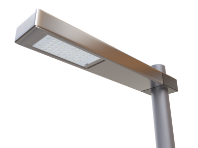 Poste de iluminação de 4700 mm de altura, composto por poste cilíndrico de aço galvanizado pintado, de 127 mm de diâmetro e 1 luminária rectangular de alumínio anodizado, de 25 W de potência máxima, de 1163x200x98 mm, com óptica de alto rendimento de tecnologia led e 24 led de 1 W, classe de protecção I, grau de protecção IP66, inclusive placa base e pernos de ancoragem.