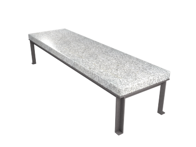 Banco de 55x42x190 cm, com assento de pórfiro patagónio e corpo estrutural de perfis de aço com protecção antioxidante e tinta de cor preto, colocação com bucha química, anilha e parafuso. | ||