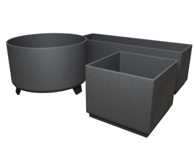 Floreira quadrada de ferro fundido, de 60x60x50 cm, pintada em cor preto.