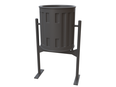 Papeleira, de 80 cm de altura e 40 litros de capacidade, com corpo de ferro fundido e estrutura de aço galvanizado, colocação com bucha química, anilha e parafuso.