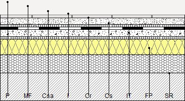 | QAB010 | Cobertura plana acessível, não ventilada, com pavimento fixo, tipo convencional, para tráfego pedonal privado. Impermeabilização com lâminas asfálticas, tipo monocamada | |