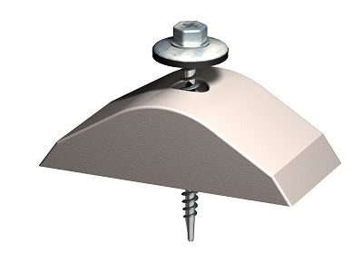 Kit de acessórios de fixação, para placas de policarbonato, em coberturas inclinadas, formado por peças de polipropileno para apoio de placa de perfil mini onda, com o mesmo perfil da onda, peças de aço inoxidável com anilha de EPDM para colocar sobre a parte superior da placa e garantir a estanquidade da fixação e parafusos auto-roscantes.
