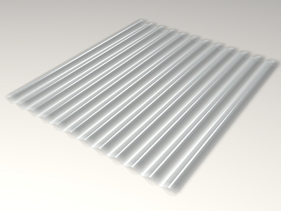 Placa translúcida de policarbonato, de perfil mini onda, de 10 mm de espessura, com uma transmissão de luminosidade de 90%.