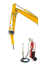 Demolição do pavilhão industrial por meios mecânicos. Fragmentação do entulho em peças manejáveis. Limpeza final do terreno. Remoção e acumulação de entulho. Limpeza dos restos da obra. Carga mecânica de entulho para camião ou contentor.