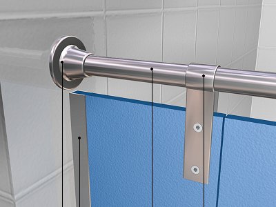 Cabina para vestiário, de 900x1400 mm e 2000 mm de altura, de painel fenólico HPL, de 13 mm de espessura, cor a escolher; composta de: portão de 600x2000 mm e 2 laterais de 2000 mm de altura; estrutura suporte de alumínio anodizado, formada por perfil guia horizontal de secção circular de 25 mm de diâmetro, rosetas, pinças de fixação dos painéis e perfis em U de 20x15 mm para fixação à parede e ferragens de aço inoxidável AISI 316L, formadas por dobradiças com mola, puxador com corrente e indicador exterior de livre e ocupado, e pés reguláveis em altura até 150 mm.
